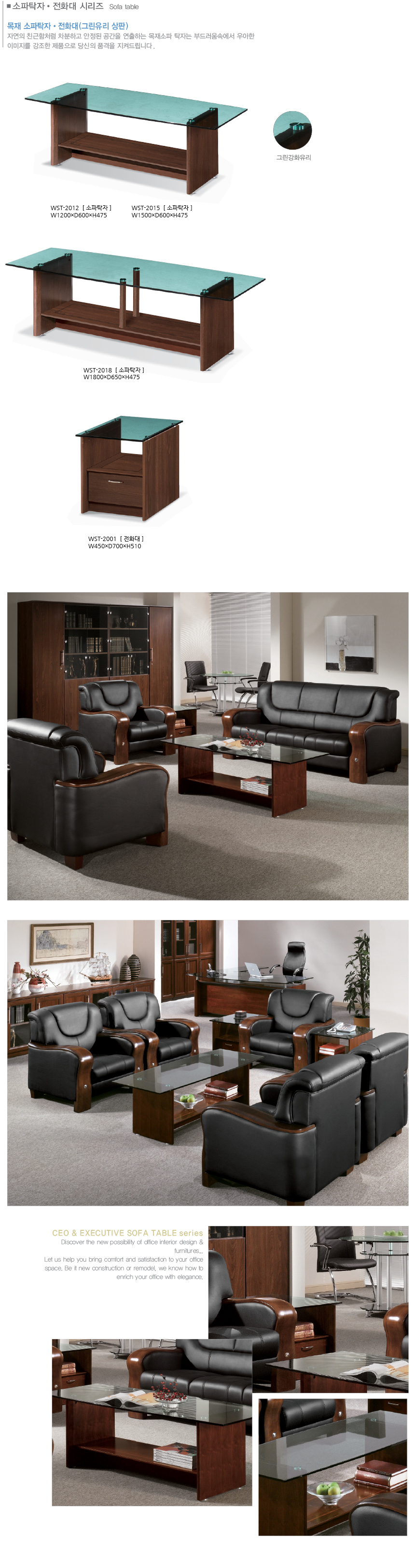 GST 월넛 소파탁자(그린유리)